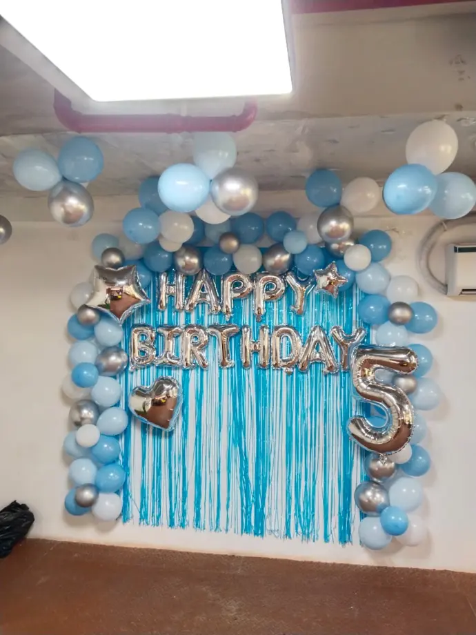 120 Balloon- Light Blue, Pastel Blue, White & Silver Chrome